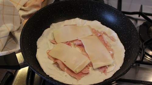 Chiudiamo bene i bordi, copriamo con un coperchio e facciamo cuocere a fiamma bassa 5 minuti per lato, dopo di che togliamo il coperchio e lasciamo cuocere altri 7 minuti girando frequentemente. Regolatevi sui tempi di cottura, dipendono sia dallo spessore della padella scelta sia dalla grandezza del fuoco utilizzato.